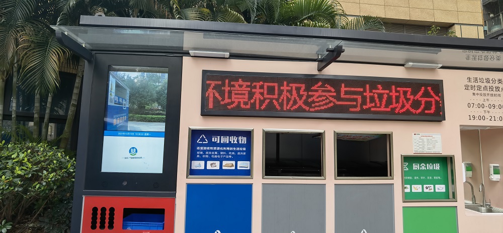 社區(qū)智能垃圾分類箱結合戶外液晶廣告機